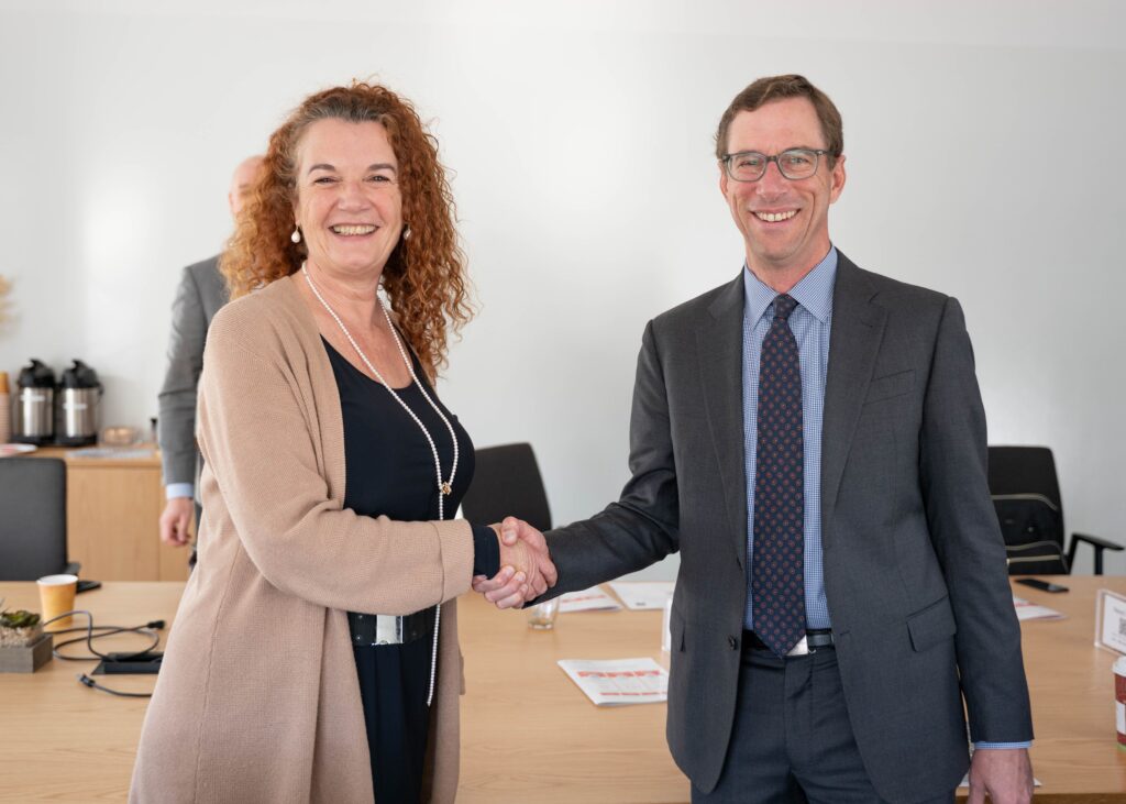 Commissioner Hilde van der Meer from the Netherlands Foreign Investment Agency (NFIA) joined COO, John Whittle to celebrate Fortinet’s first European Distribution Center.